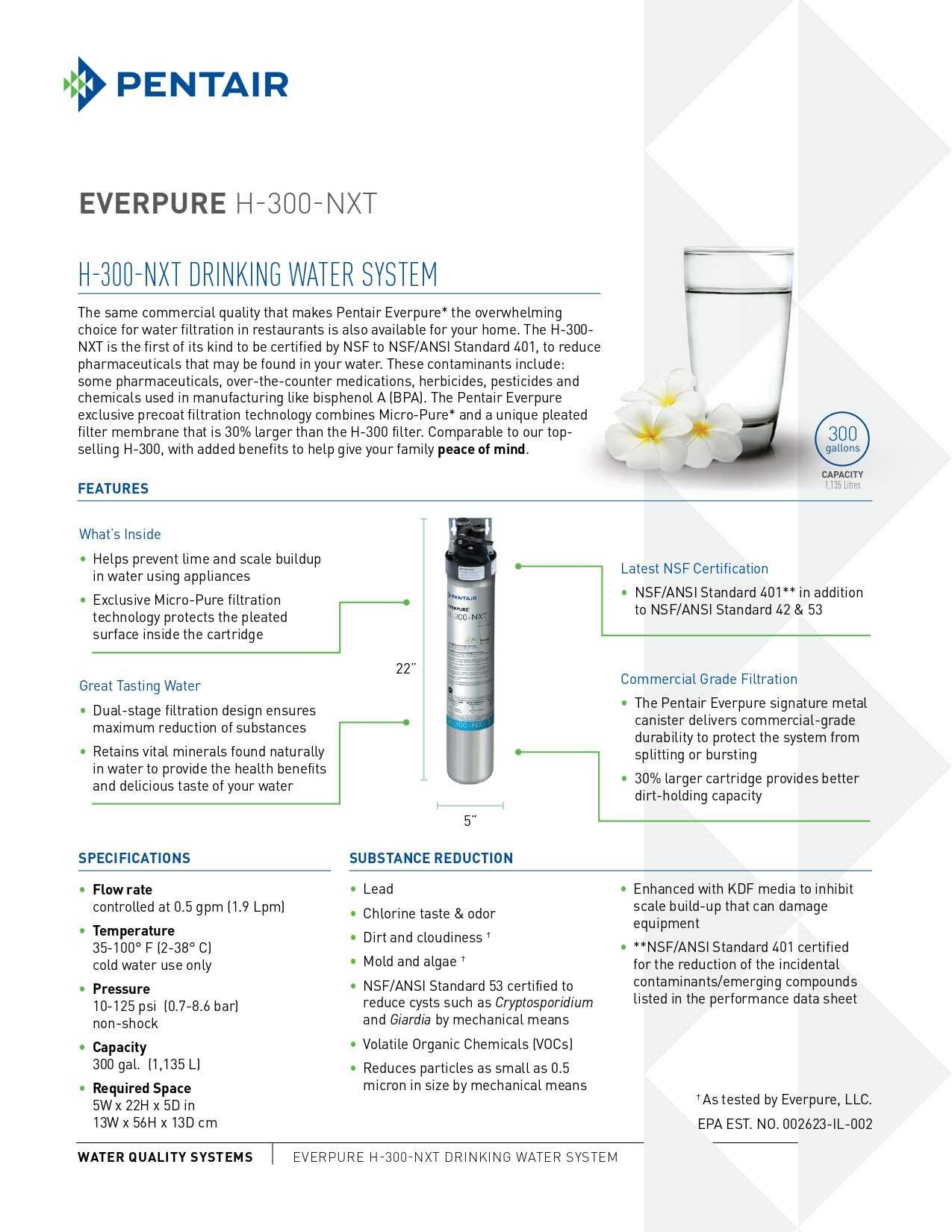 | 處理水量 | 1,135 公升(約等於 60桶 5加侖裝蒸餾水) |